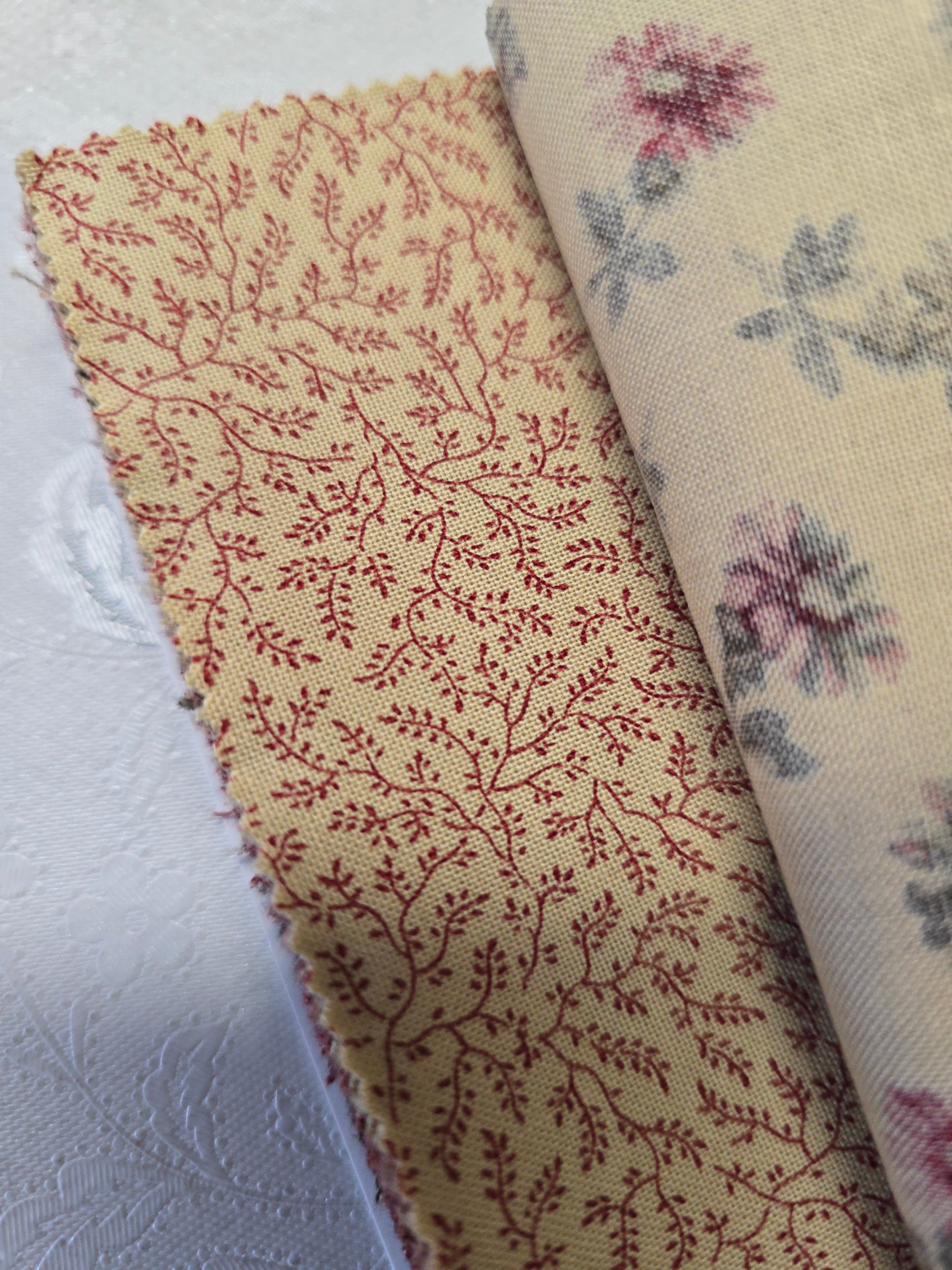 - 42 coordinated 5-inch squares in classic red and cream tones