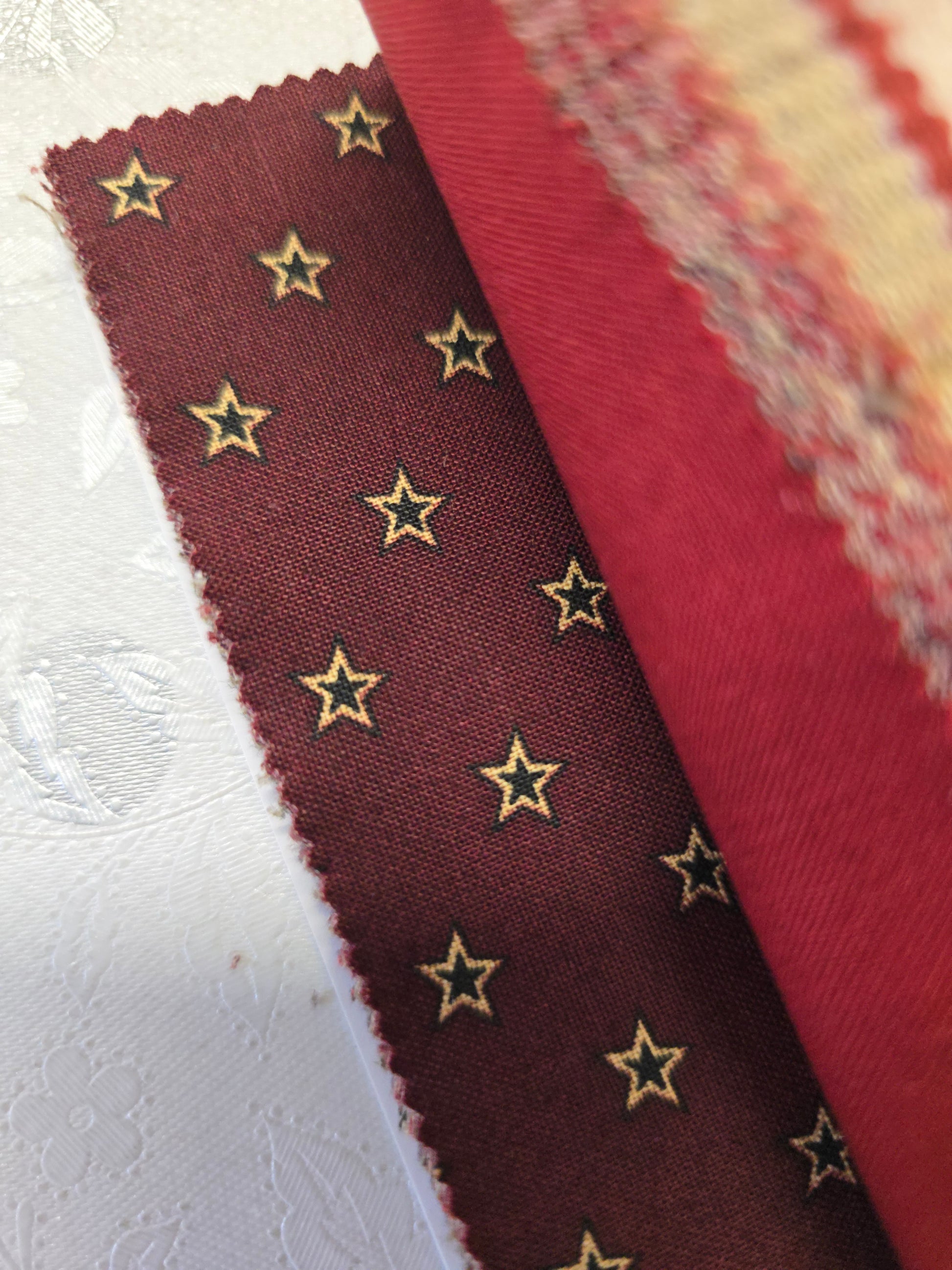 - Traditional red and white patchwork