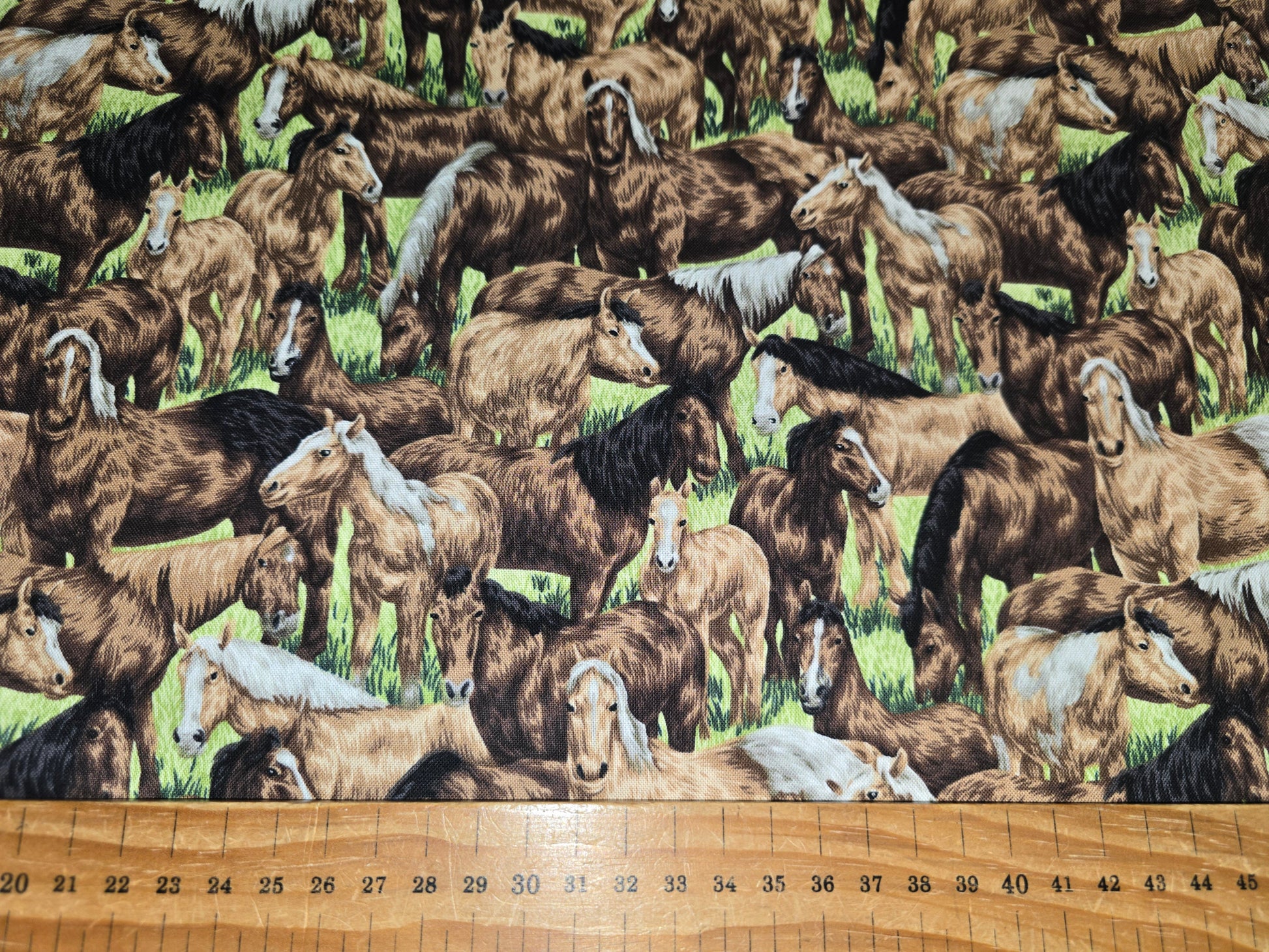 Ideal for horse lovers, farm-themed quilts, children's projects, and countryside-inspired home décor. The soothing green fields and gentle horse imagery create a calming, pastoral aesthetic that works beautifully in both traditional and modern designs.