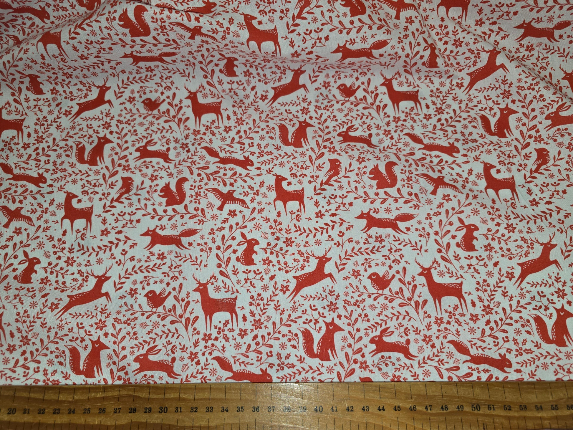Polycotton Christmas Fabric Woodland Animals Red 112cm width